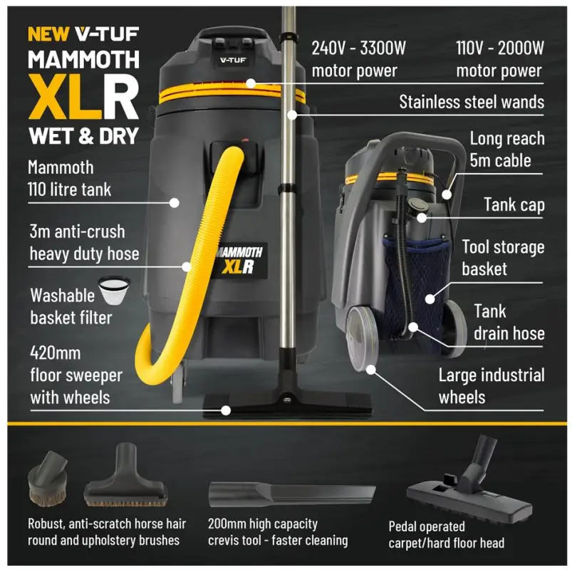 V-TUF Mammoth XLR 240 Volt Industrial Vacuum Cleaner
