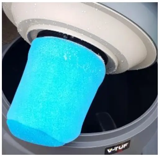 - To vacuum liquids, empty the dust from the container, remove the main Aqua-Dry basket filter and ensure the foam filter is fitted. (See image 5 on the right) After the vacuum has been used for wet use ensure the tank and foam filter is dry before vacuuming dry material.