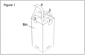- Fold bin open and turn upside down. Fold tabs in order shown to form bottom of bin. Insert tab (4) into slot (1) to lock in place. Repeat for remaining bins. (See Figure 1).