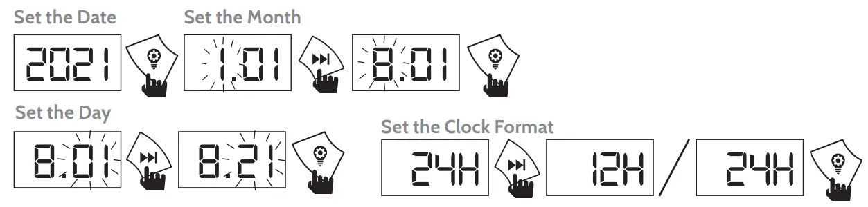 When first powered on, the Ambe will enter Standby mode, the display will automatically display ‘2021’, follow the instructions below to set the date and time.