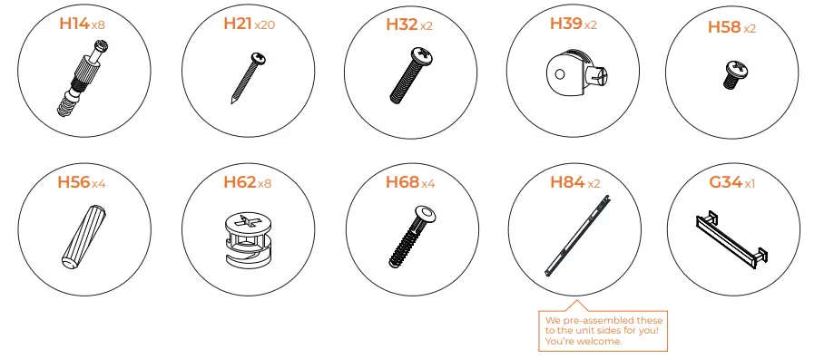 - This unit contains small parts that present a choking hazard for children under 3 years of age. These parts are for adult assembly only and should be permanently affixed to the furniture. Any unused parts should be discarded properly.