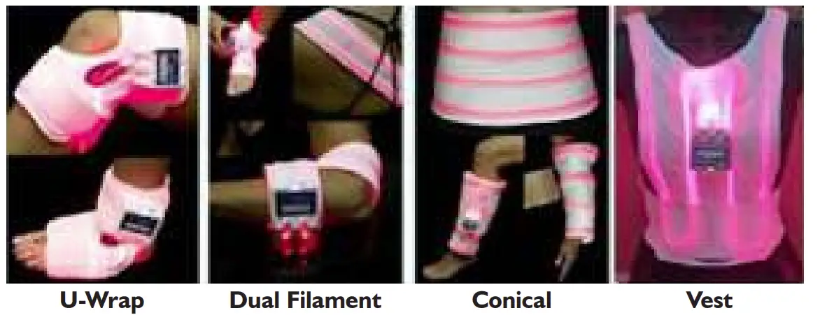 The Spectra Therapy LASERwrap® products are designed to be fully wearable, portable systems providing temporary relief of pain, increased circulation, and reduction of edema. This one-size-fits-all device is designed to lessen pain by using laser photon energy to decrease the local viscosity of fluids, which provides therapeutic effects. It is important to emphasize that therapy with the Spectra Therapy LASERwrap® does not exclude other conventional medical treatment. Effectiveness of this treatment is dependent upon correct use. There are no known side effects from this therapy. If treatment times are exceeded, the therapy may not provide more positive results.