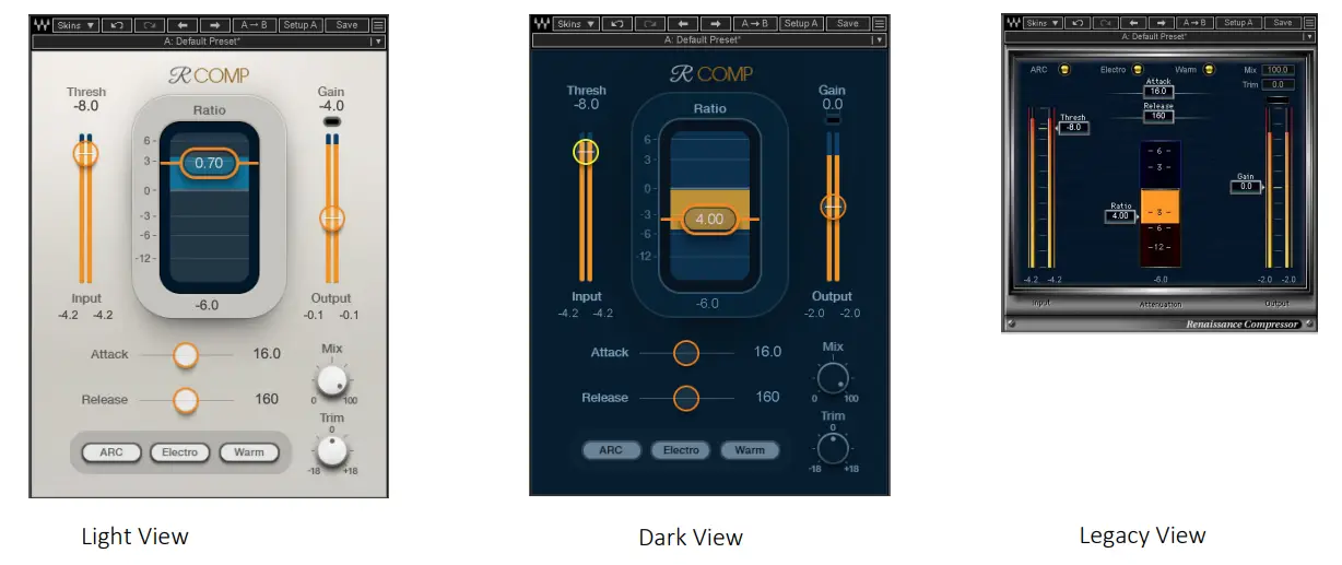 You can view the Renaissance Compressor interface in any of three styles.