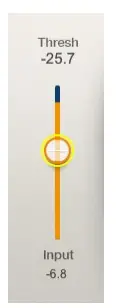 Threshold is the input level around which compression or expansion starts acting to a significant degree. The Threshold slider is integrated into the input meter so that you can see the relationship between threshold setting and input gain. To control input level, adjust the track volume on your DAW.