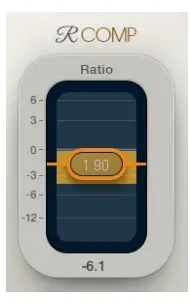 - When the compressor’s output exceeds 0 dBFS and limiting begins, the light turns yellow, indicating activation.