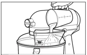 Use the pouring shield to avoid having ingredients splashing out of the bowl when mixing, as well as to easily pour ingredients in the bowl while mixing.