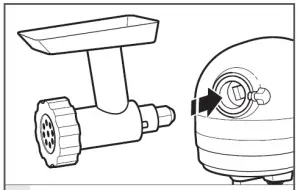 - To remove accessory: Repeat steps 1 and 2. Press accessory upward as far as possible and turn to the left. Then pull accessory from the beater shaft.