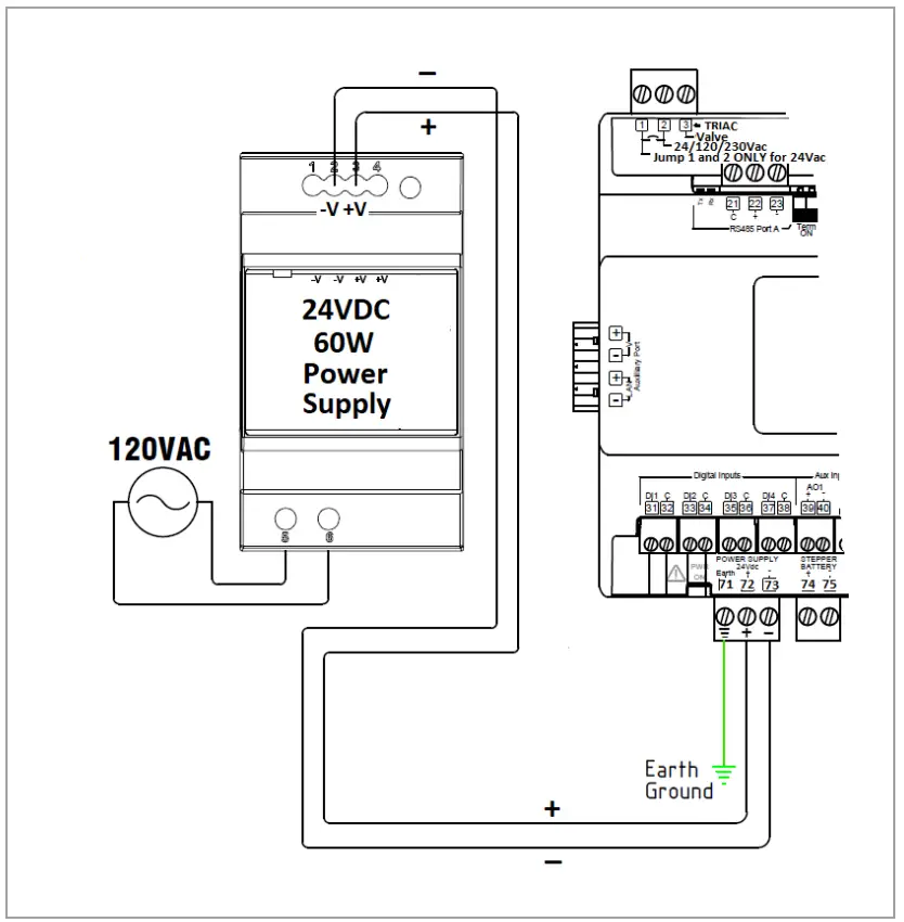 | Power Requirement | 24VDC 71(Earth) – 72(+) – 73(-) |