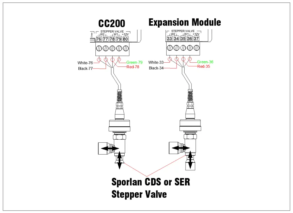 - Step 2: The CC200 Case control system (Main Controller + Expansion Modules) supports Electronic Expansion Valve (EEV) control using either Pulse Width Modulation (PWM) valves OR Stepper valves but NOT both.