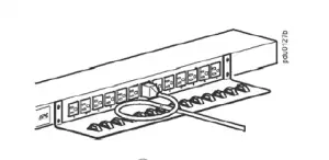 B Attach a cord to the tray by looping the cord and securing it to the tray, using a wire tie (provided). Secure each cord to the tray so that you can unplug it from the PDU without removing the wire tie.