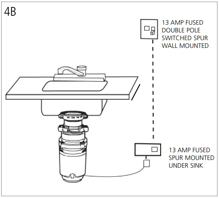 To avoid accidentally leaving the disposer running, a switch with a neon Indicator lamp is suggested. A 13Amp ASTA approved fuse, to BS 1363 must be fitted in the fuse carrier of this spur switch.
