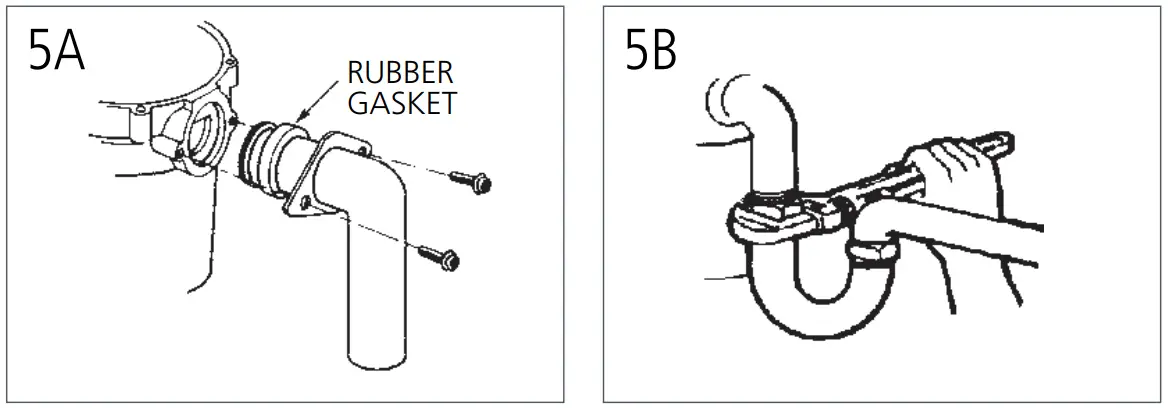 - Connect waste elbow to the disposer (see 5A), proceed to “Connecting Disposer to Mount Assembly” and then connect bottom of the elbow by tightening the slip nut (see 5B).