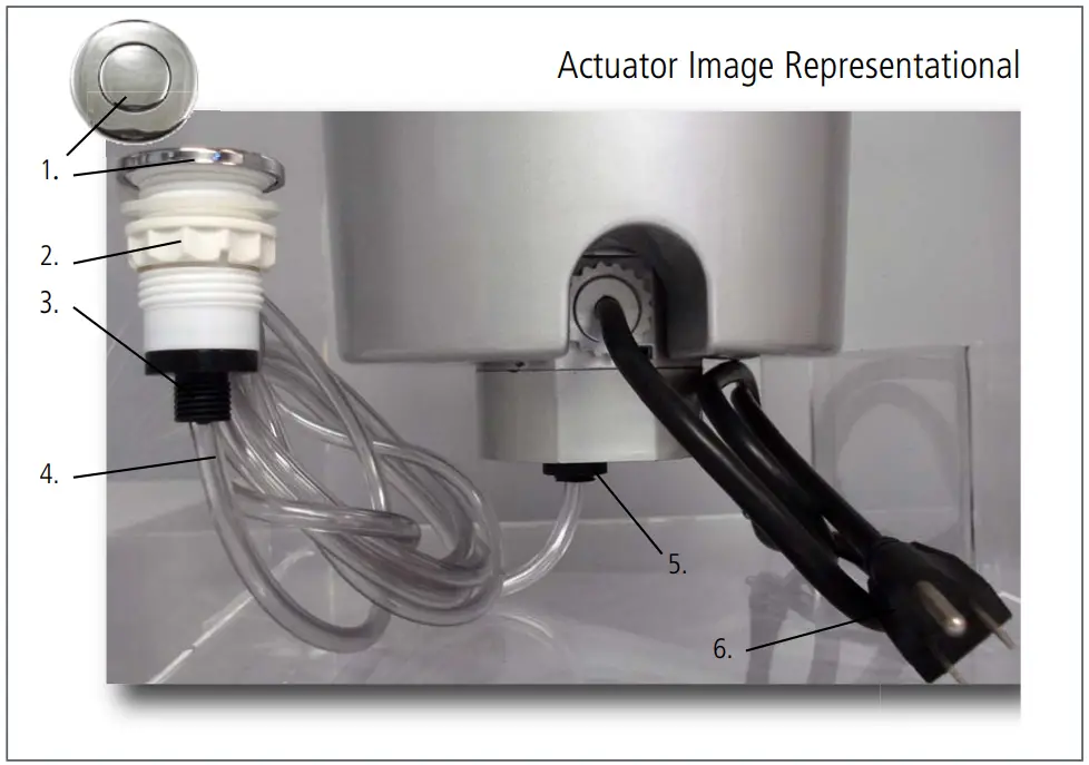- For use with the wall switch – first plug the disposer power cord into the outlet controlled by the wall switch. Then install the tube and actuator button on the disposer and press the button to place the air switch in the “on” position.