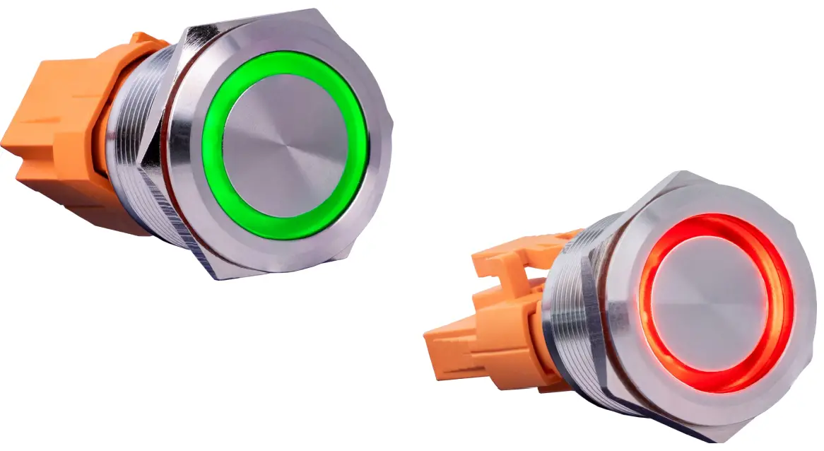 We offer this type of buttons as latching or momentary. Here, latching means that the button holds the pressed position. Momentary means that the button automatically resumes its original position after being pressed.