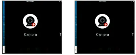 - The Camera icon will have a red arrow next to it, highlighting which camera is current set as the default. If the arrow is pointing up, the top camera is active. If the arrow is pointing down, the bottom camera is active.