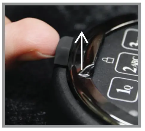 Locate the Battery Tab on the top of the Keypad (see diagram)