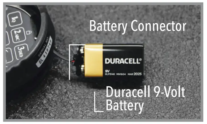 9-Volt Battery (Described Above). Slide Connected Battery Back into Compartment.