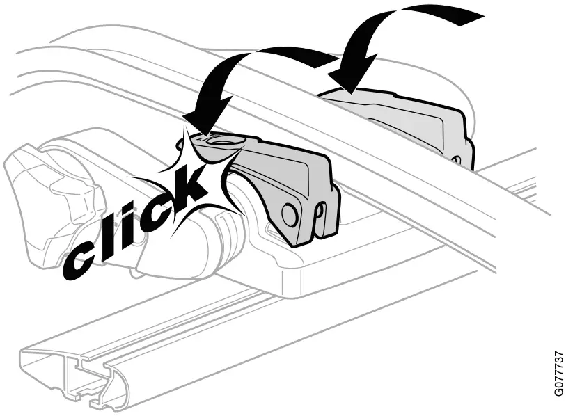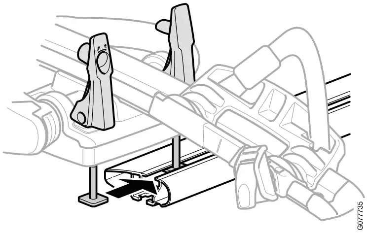 – Lift the bicycle holder onto the roof and align the mounting screws in the load carrier T-track.