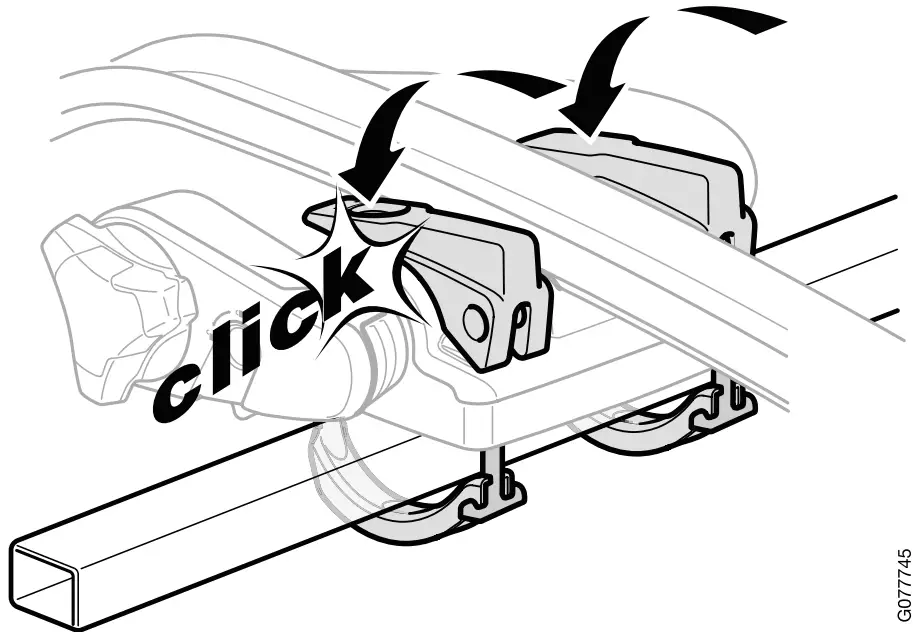 – Thread the brackets around the front load carrier and secure the brackets on the screw heads.