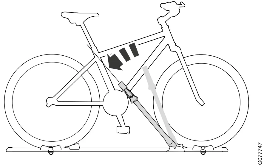 – Tension the frame holder around the frame using the torque limited knob at the bicycle holder’s front mounting.