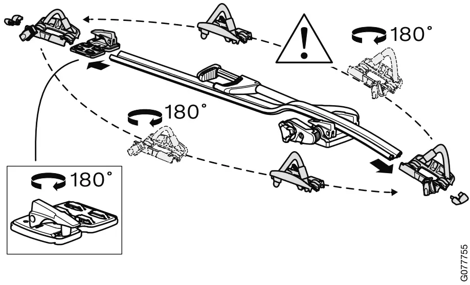 - Position the load carriers so that there is no risk of the tailgate catching the bicycle holder when it is opened.