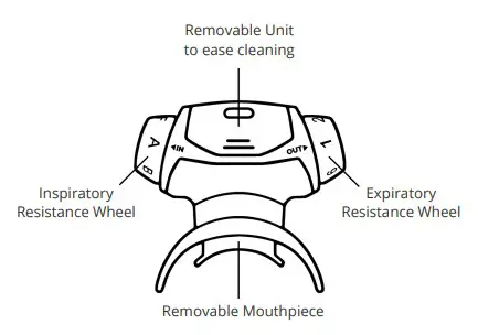 The functionality consists of the Airofit Basic Breathing Trainer providing resistance on your inspiratory and expiratory breathing muscles.