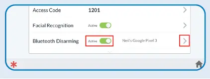 - Tap the Bluetooth Disarming option, then tap the adjacent switch to the “Active” position.