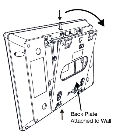 Place the backplate over the lower lip on the back of the chassis, and flip the Remote Keypad upward and push until it clicks into place.