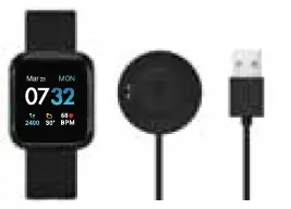 Align the metal pins on the charger to the back of the watch. Clip the charger on.