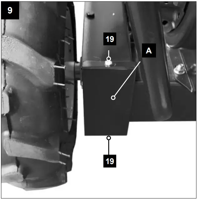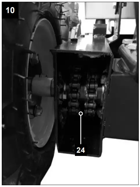 Remove cover (Fig.9 Pos.A) concerning the screws (19). Regrease drive chain (24) every 500 operating hours. Recap the opening with the lid (Fig.9 Pos.A) and the screws (19) after servicing.