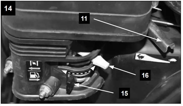 Set the fuel cock (15) to position
