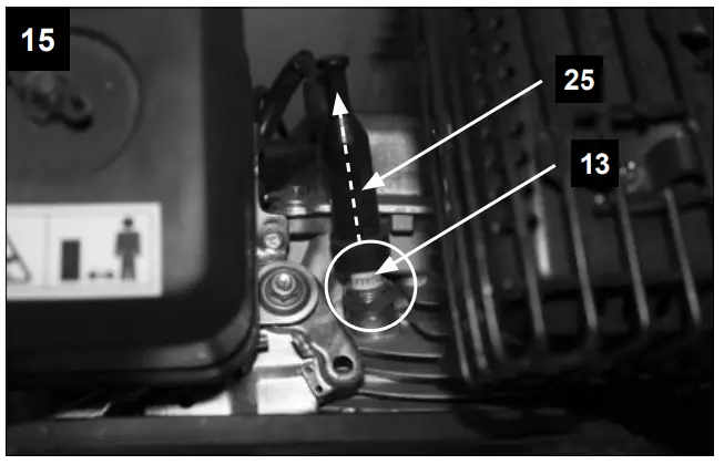 - Attach the spark plug connector (25) at the spark plug (13).