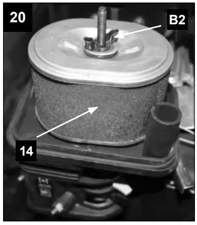 - Loosen the thumb screw (Fig.20 / Pos.B2) and remove the air filter (Fig.20/Pos.14)