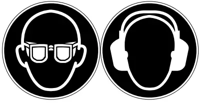 ![]() | Wear eye protection. Wear hearing protection. |