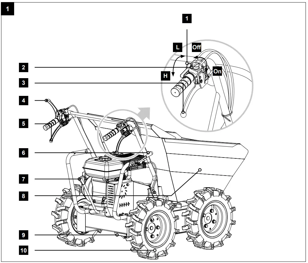 Be sure to observe the restrictions in the safety instructions. Purpose of the device is the transport of materials in the specified capacity range.