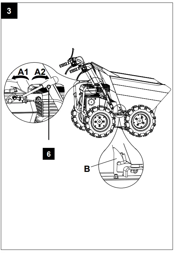 If you have difficulty steering the unit, you will need to adjust the steering levers (3) + (5) with the special adjusters (26).