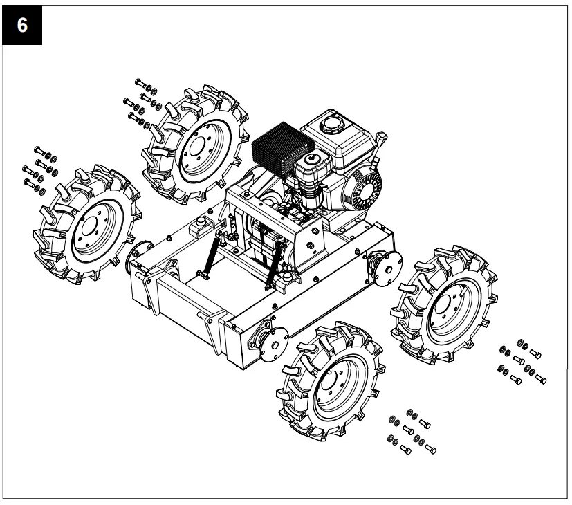 For maintenance disassemble the wheels as shown in figure 6.