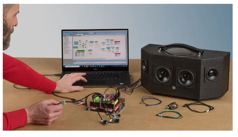Despite its compact form factor, the KABD-430 is a very capable amplifier, and there is no limit to the kind of projects that can be achieved with it. Download the SigmaStudio programming guide for the KABD series and the project pack found on the product page of the KABD-430 for details about how the necessary DSP programming can be achieved to achieve these projects.