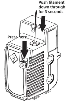 - Press spring presser and push filament down through for 3 seconds, then pull out vertically quickly.