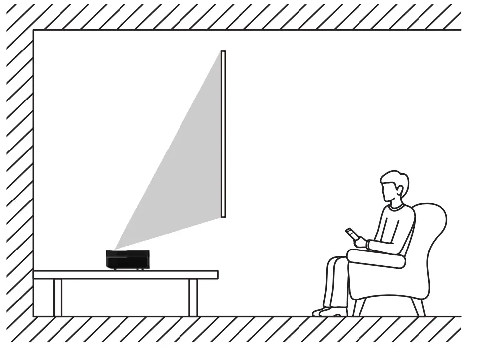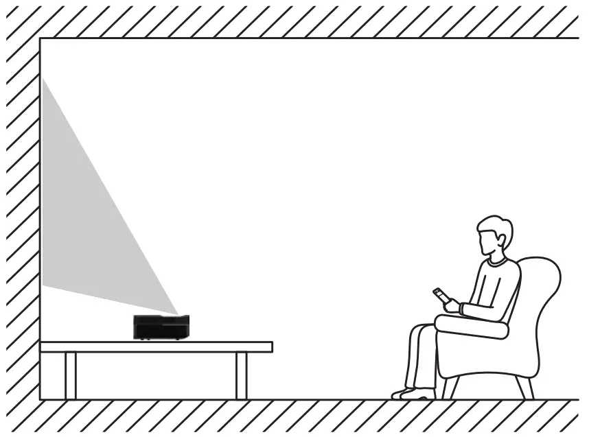 - When turning on the projector, make sure no one within projection range is looking into the lens.