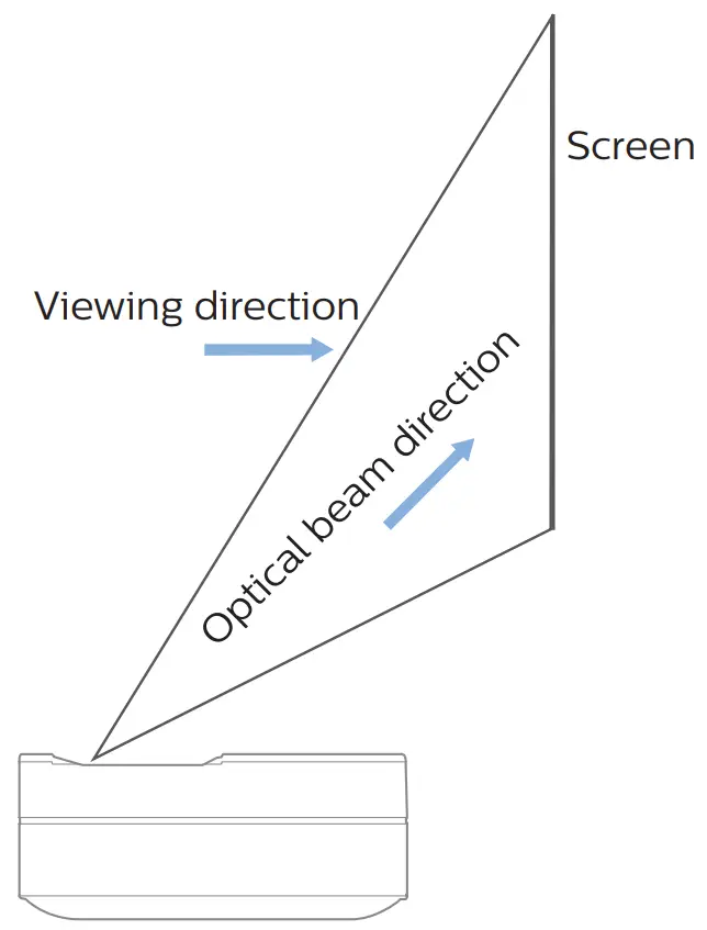 Risk of eye irritation or damage! This product is equipped with a laser light source, which emits very bright light. Do not look directly into the projector lens during operation. This could cause eye irritation or damage.
