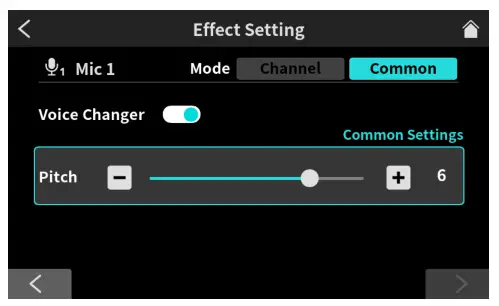 Voice Changer settings screen in Common Mode
