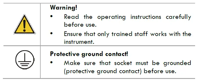 - The instrument may only be opened by qualified and trained technicians.