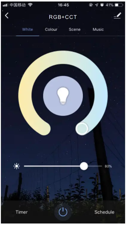 The Schedule key can add multiple timers to turn on or turn off light according to different time periods.