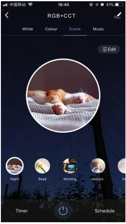 - Tuya APP cloud control, support on/off, RGB color, color temperature and brightness adjust, delay turn on/off light, timer run, scene edit and music play function.