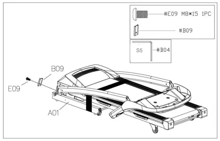 | E05: Current overload protection (Self Protecting System) | The incoming voltage is too low or too high. The control board is damaged. | Restart the treadmill. Check the incoming voltage to ensure it’s correct. Check the control board, replace if damaged. |