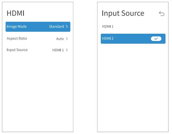 - Toggle boot source between the homepage and HDMI input source interface.