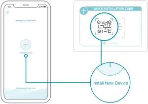 - Tap Install New Device. Scan the QR code on the Quick / Installation Card. Follow the on-screen instructions to complete the setup.