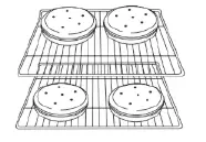 For best results when baking cakes on two racks, use the Bake function, a flat rack in rack position 5, and a flat rack in rack position 2. If you do not have two flat racks, use a Max Capacity Oven Rack in rack position 6. Place the cakes on the racks, as shown. Keep at least 3″ (7.6 cm) of space between the front of the racks and the front cakes.