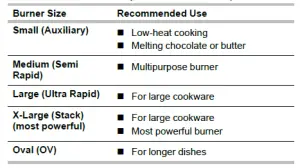 Select a burner that best fits your cookware. Burner positions will vary based on the model of your range.